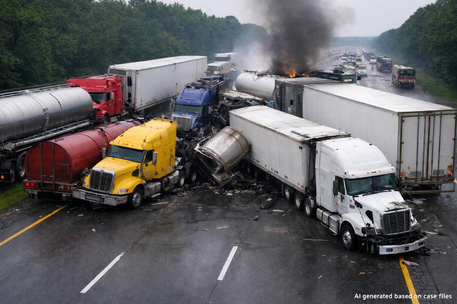 A multi-vehicle truck crash (often called a chain-reaction collision or pileup) usually involves 3 or more vehicles, with a commercial truck contributing to the sequence.